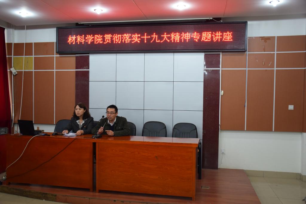 党委积极响应上级号召,于11月2日下午,在材料馆B424会议室,院党委书记王丽萍为全体教工党员作题为“聚焦党的十九大”的专题党课,会议由王利民院长主持。