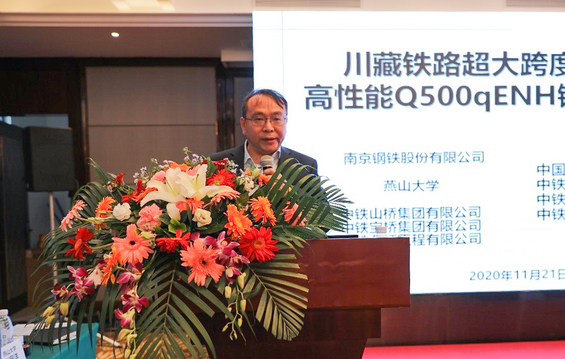 组织南京钢铁股份有限公司与中铁山桥集团有公司、中铁宝桥集团有限公司和中铁九桥工程有限公司、中铁大桥勘测设计院集团有限公司、中铁二院工程集团有限责任公司、中铁第一勘察设计院集团有限公司、中国铁道科学研究院集团有限公司等单位联合研发、服务于川藏铁路中段工程(雅安至林芝)的“川藏铁路超大跨度桥梁用高性能Q500qENH钢及应用技术”项目,通过了中国钢结构协会组织的评审。评审组主任委员由中国工程院院士、北京科技大学钢铁共性技术协同创新中心主任毛新平担任,副主任委员由全国工程勘察设计大师、中铁大桥勘测设计院集团有限公司副总工程师易伦雄担任,评审委员由相关专家组成,评审会由中国钢结构协会常务副会长刘毅主持。合作单位领导祝瑞荣、楚觉非、胡广瑞、李军平、李方敏、陈克坚、杨少军等出席了会议。