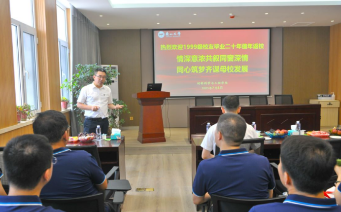 党委常委、副校长王利民、学院党委书记李曦达、副书记袁云岗、国家重点实验室副主任张春祥、副处级辅导员王亦晨以及各系室专业任课教师为各位校友举行了欢迎仪式。王校长对各位校友的到来表示了衷心的欢迎,他从学院师资、学科建设、科研成果等多个方面向各位校友讲述了近年来学校学院的发展与成绩,正是校友们形成的“厚德、博学、求是”的优良校风,激励着一代又一代的燕大人、材料人努力奋斗,在校时你们以母校为荣,现在学校以你们为荣,燕大材料永远是校友们的精神家园与坚强后盾。随后,校友们按专业分三个场地和各位专业老师进行了近距离的交流座谈,你一言我一语,共同回忆大学四年的师生情谊和校园往事,回顾过去20年各自的人生经历,感恩燕大材料给每一个人带来的进步与收获。座谈交流后,大家在材料馆楼前合影留念。