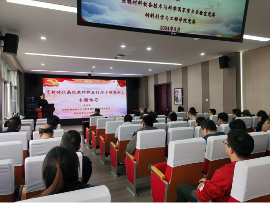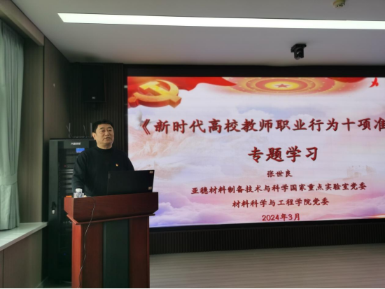 联合亚稳材料制备技术与科学国家重点实验室在里仁行政楼113会议室举办学习《新时代高校教师职业行为十项准则》(以下统称《准则》)专题讲座暨师德师风警示教育大会。讲座由国家重点实验室党委书记张世良主讲、av解说