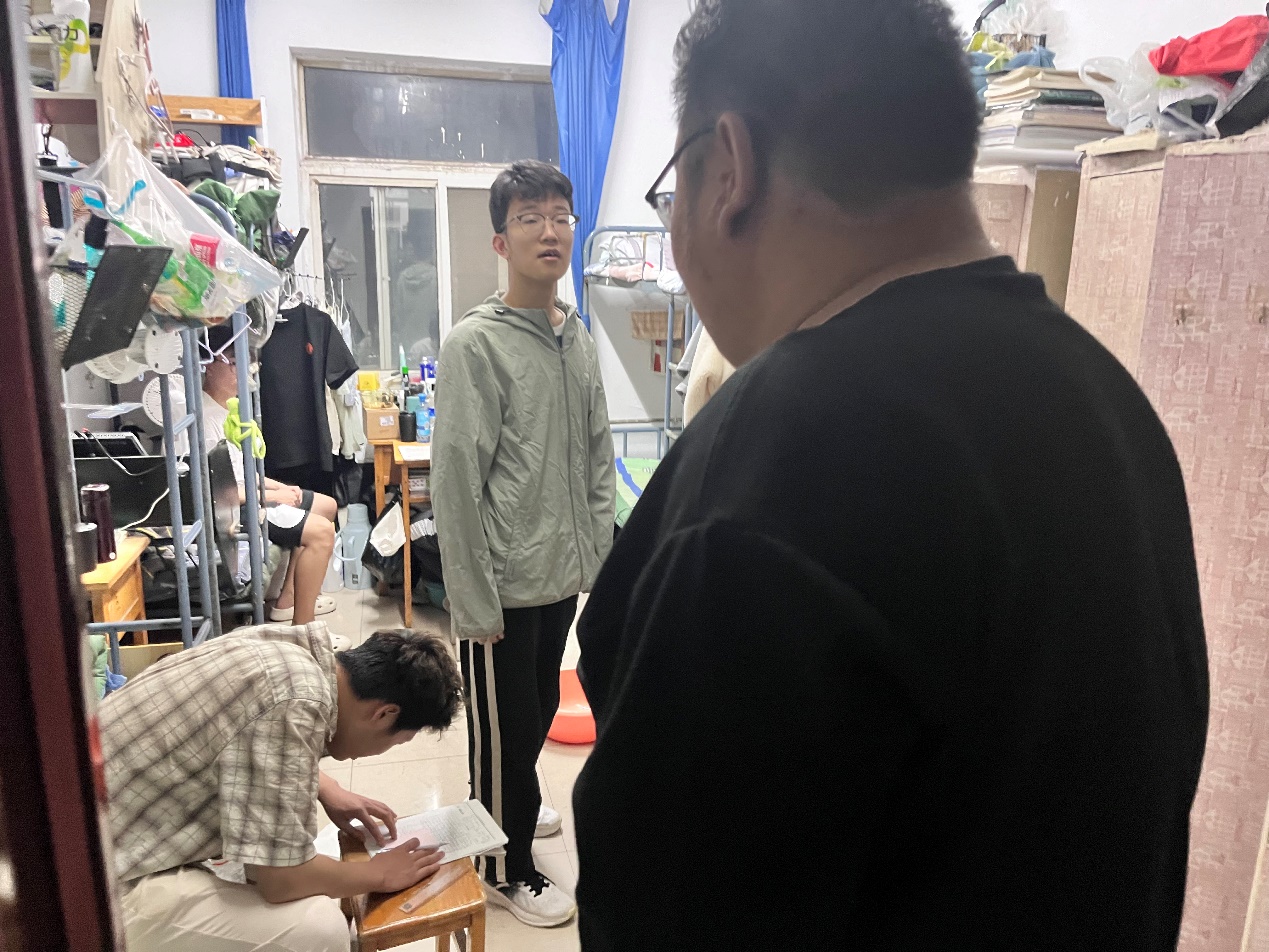 (三组检查男本科生宿舍学生归寝情况)