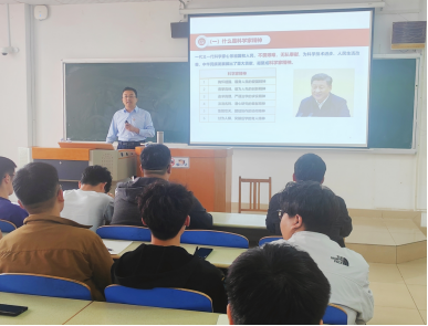 院长张新宇在西校区第三教学楼106室为学院72入党积极分子开展以《有为担当科研强国》为主题的党课。