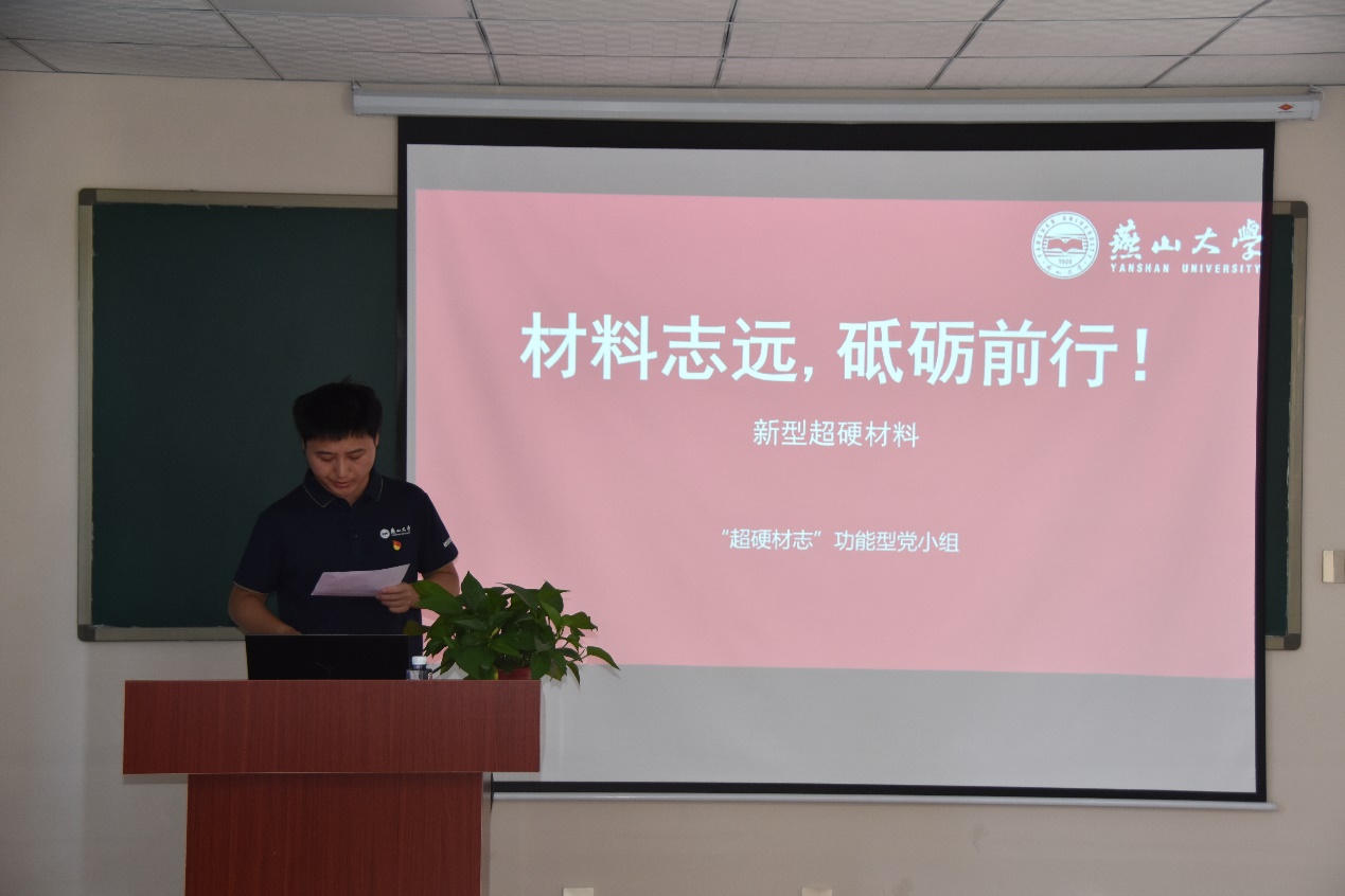 在党委组织部、学生社区党工委的指导下,党委学生工作部的大力支持下,“寓见榜样”学生社区功能型党支部选拔了“术研材学”“航天材翼”“钢轨材坚”“超硬材志”“感测材精”五个功能型党小组。党小组依次通过PPT形式向大家进行展示,介绍其研究方向、小组成员、科研成果和奋斗目标。他们分别奋战在考研备战、空间飞行器元件研发、铁路轨道辙叉创新、超硬材料高压合成、生物传感器件精度提升等五个领域,他们对中国共产党红色基因和光荣传统的传承坚定,专业素养一流,对科研学习保持热情,对未来的憧憬与追求远大。