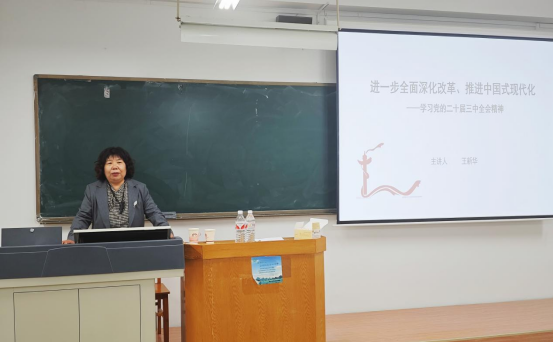 邀请马克思主义学院王新华教授在里仁教学楼B207室以《进一步全面深化改革、推进中国式现代化--学习党的二十届三中全会精神》为主题,为学院16名发展对象和45名学生党员讲授专题党课。