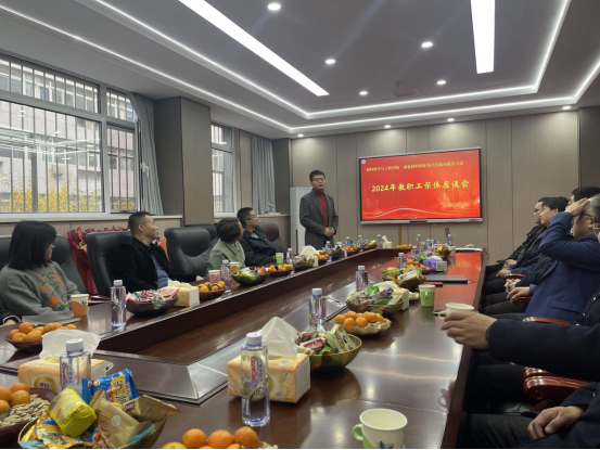 102会议室举办荣休及新入职教职工座谈会,邀请了今年荣退的于金库、杨雪梅两位老师及新入职的五位教职工参会。学院国重领导班子,相关系室主任、教工代表出席了本次座谈会。会议由联合工会副主席王奕骅主持。