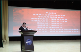 典礼开始前,师生们在签名墙上留下珍贵签名,共同观看由毕业班精心制作的纪念视频,重温四年求学时光的点点滴滴。典礼在庄严的国歌声中正式启幕,优秀毕业生代表石晓飞带领全体同学进行毕业宣誓,铿锵誓言彰显了材料学子的精神风貌。