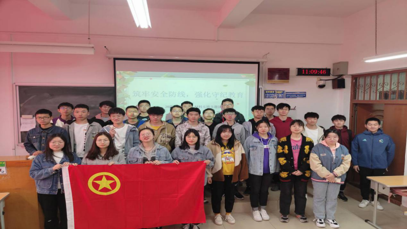 安全校园逢盛期,莘莘学子迎佳音。建设安全守纪校园需要我们共同的努力,20级材料三班团支部与四班团支部共同举办了主题为“筑牢安全防线,强化守纪教育”的团日活动。活动伊始,四班的学生代表向同学们详细介绍了校园内外存在的安全隐患,组织同学们观看交通安全视频,希望同学们能从历史的经验中吸取教训,做到遵纪守法。只要我们都能自律守纪,注意防范,相信良好的校园环境会一直存在。