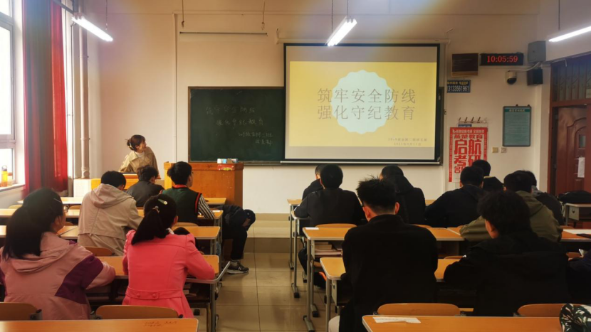 用青春践行誓言,用行动守卫安全,20级材料六班团支部在西区第二教学楼开展了“筑牢安全防线,强化守纪教育”主题团日活动。活动开始由团支书介绍本次活动的主题;随后,详细讲解安全知识并带领同学们观看安全教育视频,然后组织同学们进行安全知识的抢答,巩固同学们学习的安全知识。通过此次活动,同学们更加坚定了遵章守纪,争做安全标兵的决心。