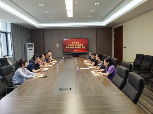 袁云岗向信息学院领导老师一行的到来表示热烈欢迎,他结合学院学生工作实际对学风建设过程中学院在课程安排、公共课辅导、学业激励、学业帮扶、学业预警等方面采用的措施进行了汇报,同时也对当前学风建设过程中的瓶颈难点与信息学院领导老师进行了沟通交流。王亦晨就其分管的工会工作从工会小家的建设、工会活动的开展、工会会员的诉求等进行了探讨,并对未来工会工作的开展设想与信息学院领导老师进行了分享交流。