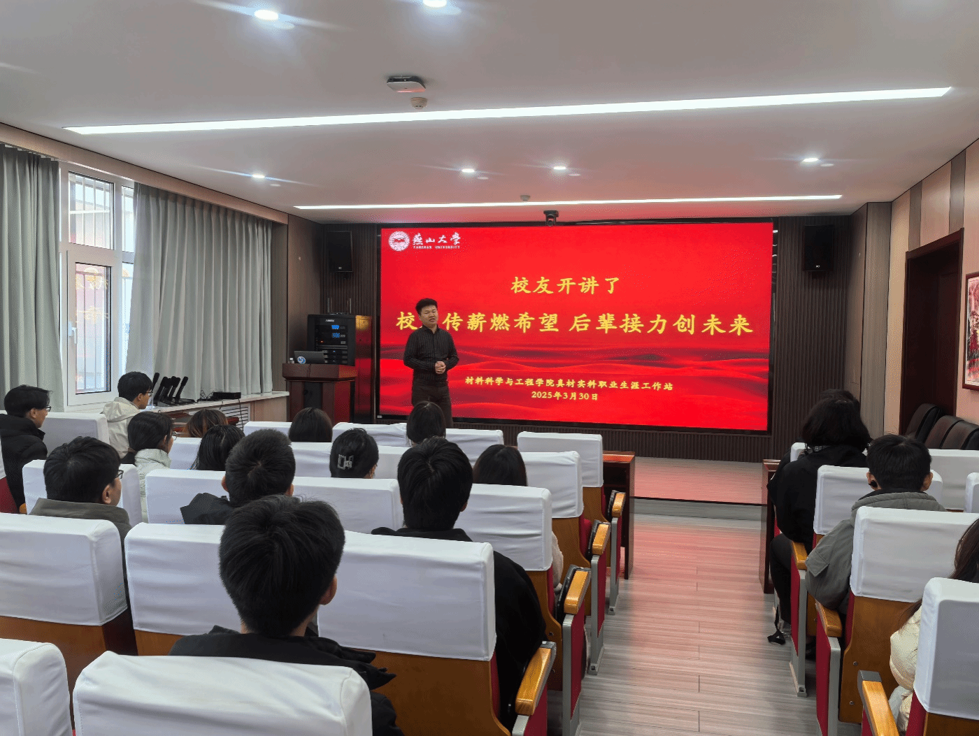 于3月29日-30日在材料新楼113以“校友传薪燃希望 后辈接力创未来”为主题举办两场“校友开讲了”优秀校友励志分享会。本次活动邀请到了学院1998级校友、深圳国能宸泰科技有限公司创始人兼CEO李岩和2013级校友、上海金力泰化工股份有限公司副总裁何俊龙亲临进行专题分享,现场气氛热烈。