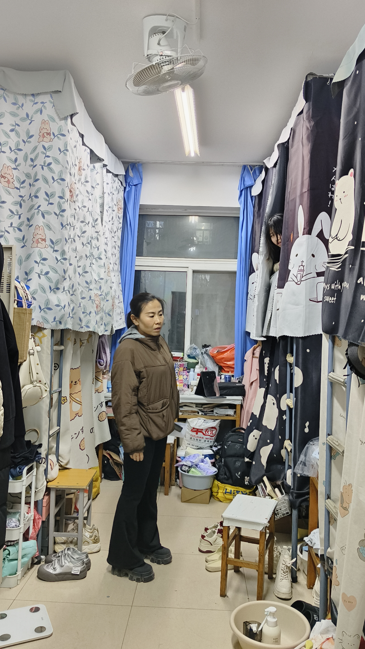师生临时组建8支工作队,深入各组团学生寝室,以“地毯式排查+温情式服务”模式深入各学生组团。他们手持检查清单,重点开展三项核心工作:一是安全守护行动:逐间核查未归寝学生请假记录,现场演示安全用电规范,排查私接电线、违规电器等隐患,温馨提示寝室成员做到“人走断电”;二是文明共建行动:对照《av解说