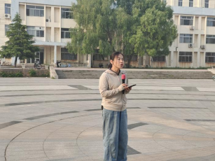 西(二)教学楼前广场上,一场饱含深情的升旗仪式正在举行。av解说