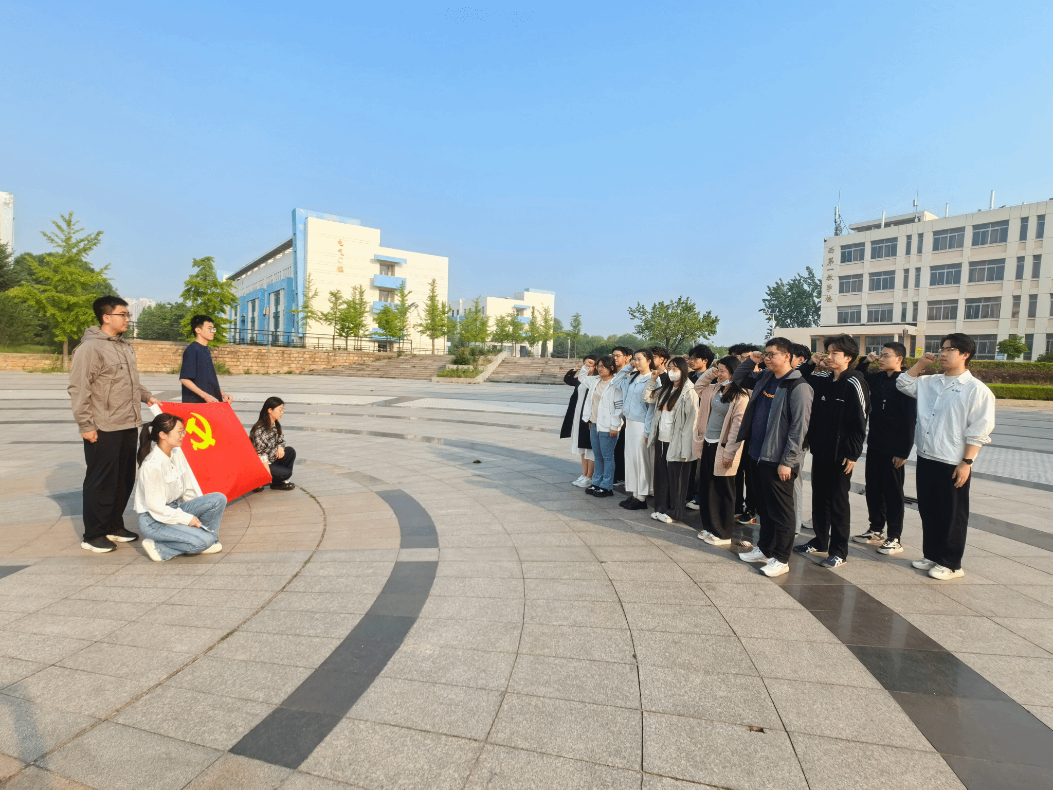 清晨六时的西校区第二教学楼前广场,朝霞为27名毕业生党员披上金色戎装。在参加了学院2025届本科毕业生最后一次集体升旗仪式后,毕业生党员重新列队,面向党旗,重温入党誓词,庄严而坚定,铿锵誓言划破晨霭。随后,党员代表李娅瑄以《爱党爱国,吾辈担当》为题发表演讲,深情号召全体毕业生党员要永远铭记党的恩情,用实际行动诠释对党的绝对忠诚,以不懈奋斗践行爱国之志,向着未来的征程奋勇前行,书写青春华章。