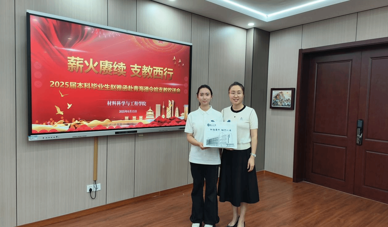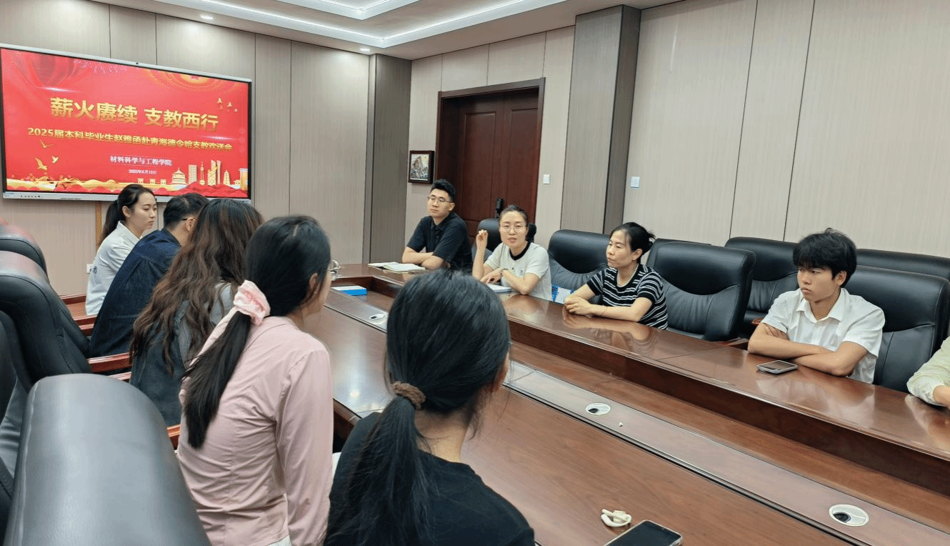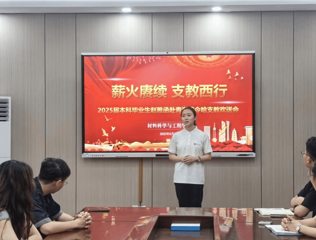 于2025年6月15日上午在材料新楼102会议室,为即将奔赴青海省德令哈市开展为期一年支教服务的2025届本科毕业生赵雅函举办了一场温情满溢的欢送会。学院党委副书记王亦晨、全体辅导员、av解说