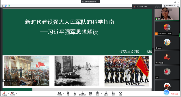 加强理论学习,筑牢信仰之基。6月30日下午,学院邀请了马克思主义学院包巍教授作题为《新时代建设强大人民军队的科学指南——习近平强军思想解读》的讲座。讲座从习近平强军思想的形成背景、强军之魂、强军目标和强军路径四个方面进行阐述,帮助师生党员深刻领会习近平强军思想的精神实质和丰富内涵。