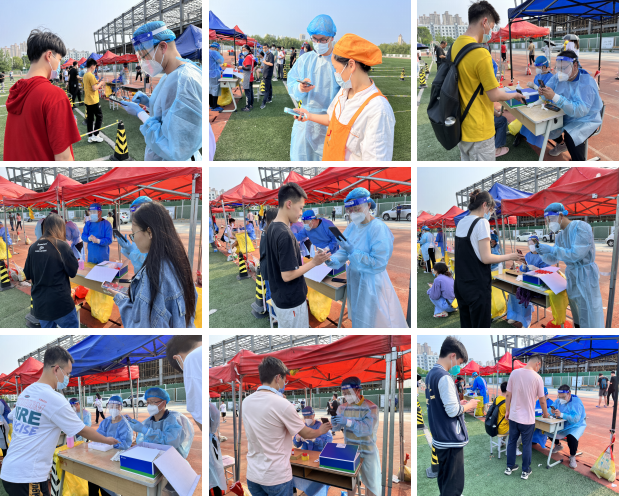李英梅、付瑞东、李艺君、顾江龙、刘迪、邱海龙、许世清、薛天宇、仝柯、王锁涛、王鹏、于鹏飞、魏东13位教师积极响应学校号召,主动报名参加了6月20日学校的全员核酸检测工作,在战“疫”一线当先锋、作表率,用实际行动践行人民教师的初心使命。为保障各项工作有序、高效开展,教师志愿者们提前来到核酸检测点,根据调度安排,各司其职,分工井然有序,大家分别投入到扫码登记、流程引导、秩序维护等各项保障工作中,为疫情防控贡献力量。