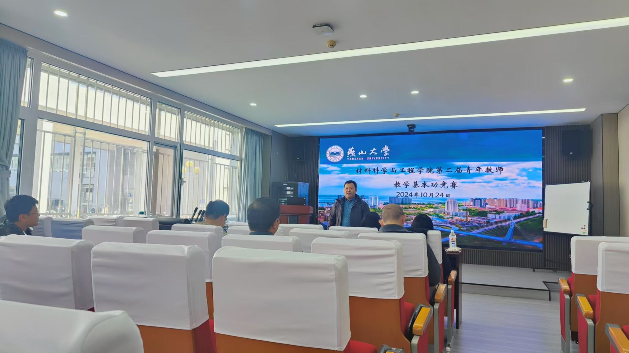于10月24日14:00在里仁会议室113组织开展了青年教师教学基本功比赛。此次竞赛邀请3位具有丰富教学及评审经验的学院专家担任评委,学院4名青年教师参赛,部分青年教师到场观摩竞赛。