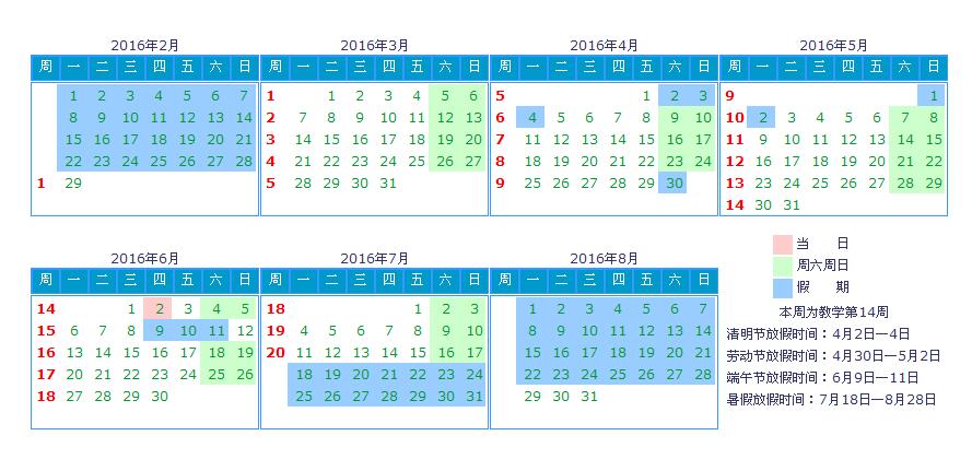 av解说 2016年春季学期教学校历