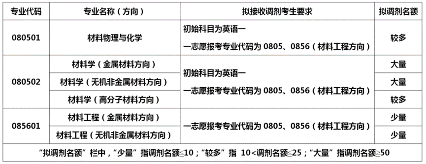 申请调剂材料学(080502)和材料工程(085601)专业的考生须选择相应的专业方向。